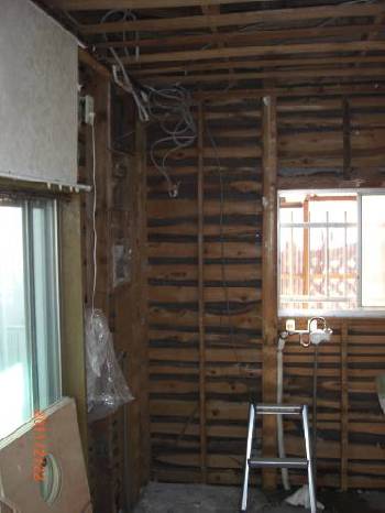 この時は引越し前の空家状態で電気から壁紙の張替え・補強・防鼠防虫といった事をまとめて施工させていただきました。 |